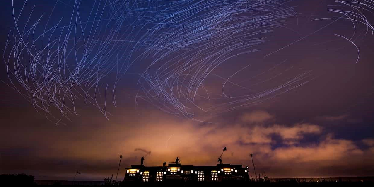 There are 1,500 pigeons in a loft at Thamesmead, South East London. For three nights in June they were the stars of Fly By Night – an ‘interspecies collaboration between a New York artist – Duke Riley and his birds’. Tiny LED lights were attached to the feet of the pigeons, which flew around the loft as the sun set.