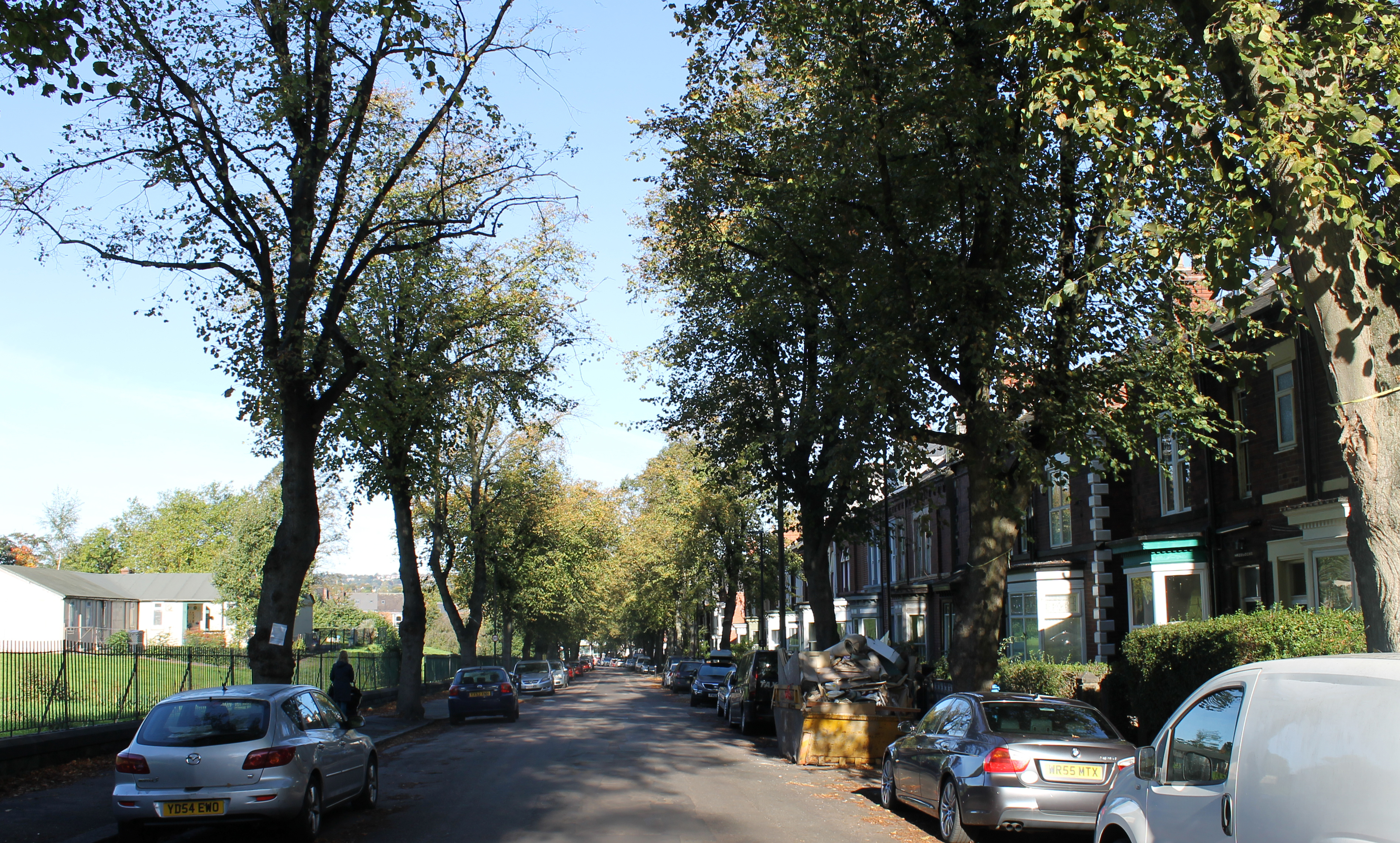 Meersbrook Park Road and existing avenue of Lime trees. The trees are a character defining and much loved feature of the street.